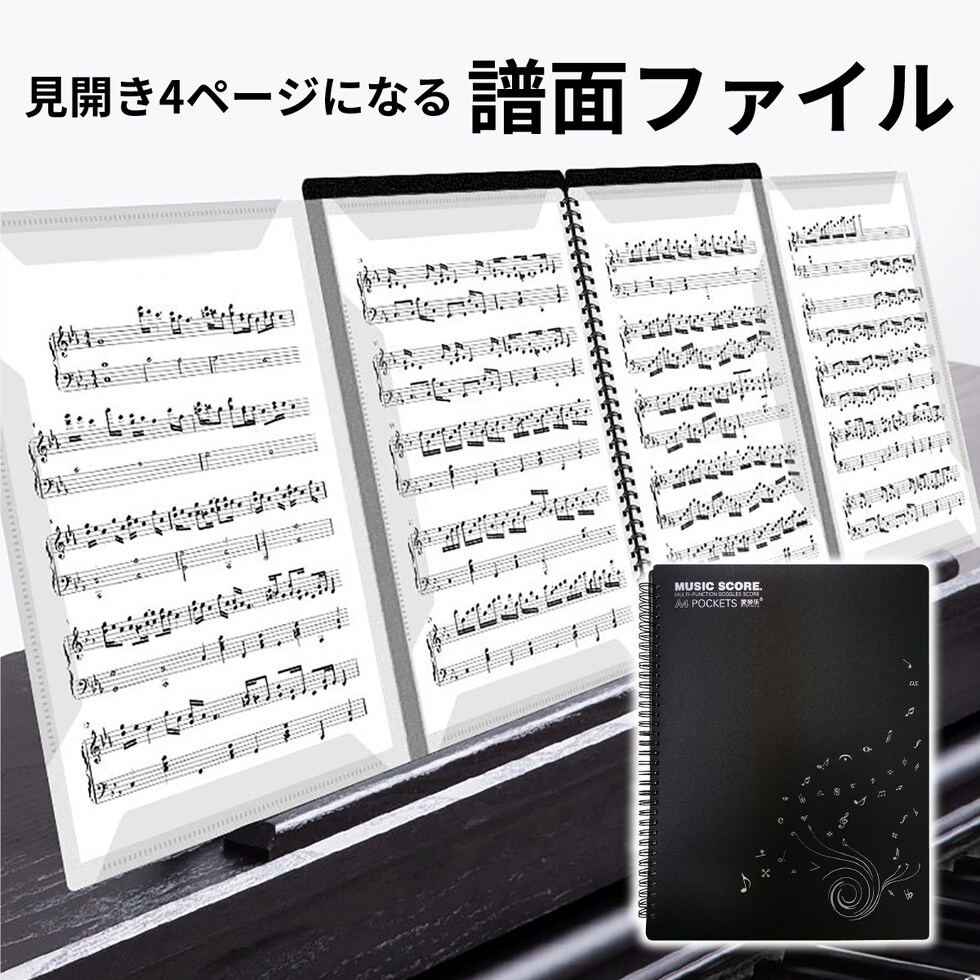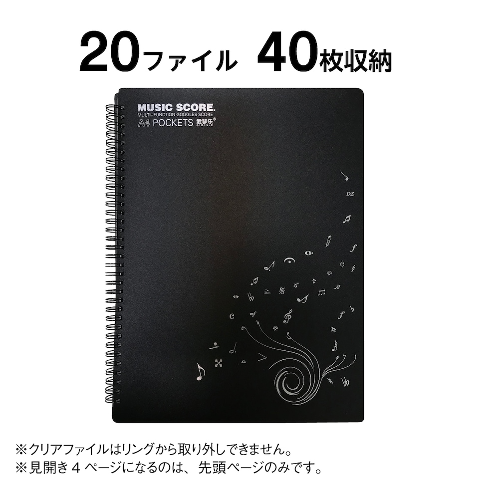書き込める 楽譜ファイル 4面 見開き4面 20ファイル 40ページ 書き込み ピアノ 譜面 ファイル 発表会 演奏会 楽譜台紙 score-file