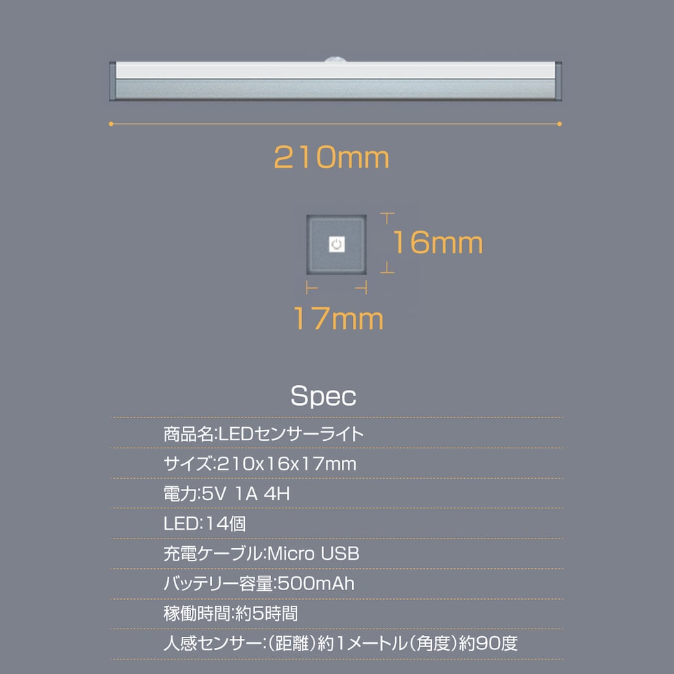 センサーライト 人感 センサー ライト LED 自動 点灯 消灯 照明 感知 検知 マグネット 暗闇 明かり USB クローゼット 玄関 廊下 屋内 屋外 senser-01
