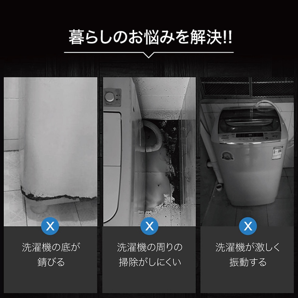 洗濯機置き台を使用することで、洗濯機の底が錆びる、洗濯機の周りの掃除がしにくい、洗濯機が激しく振動するなどの悩みを解消できます。