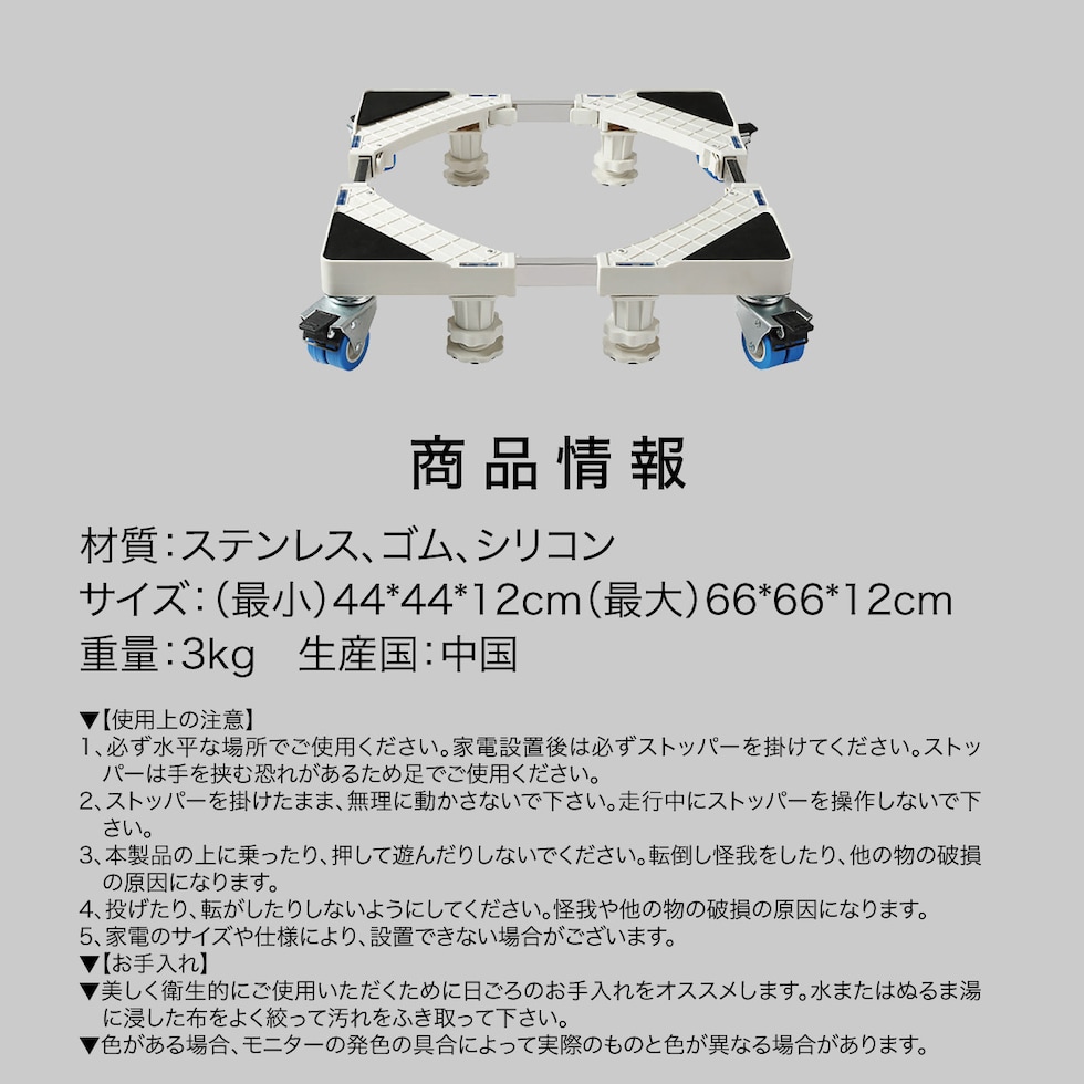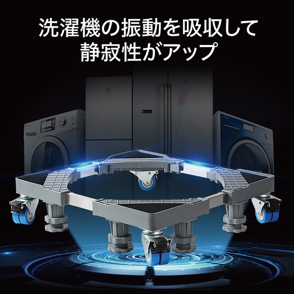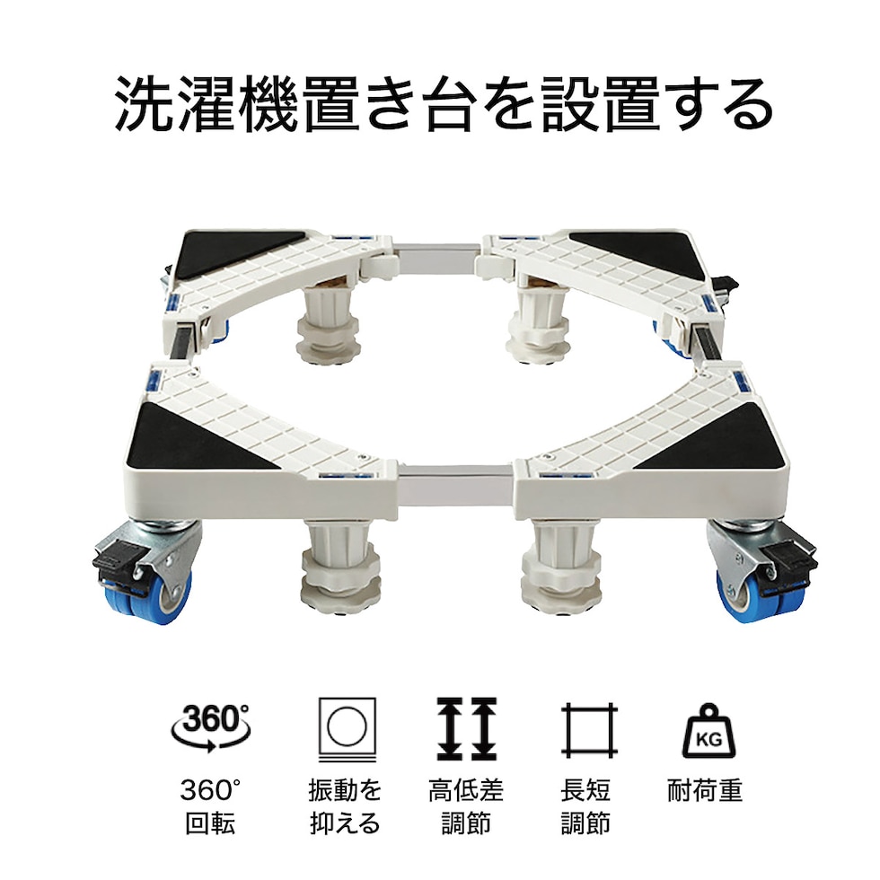 洗濯機 置き台 キャスター付き 8足8輪 洗濯機スライド台 洗濯機台 洗濯機ラック 洗濯 キャスター 冷蔵庫 sentaku-caster