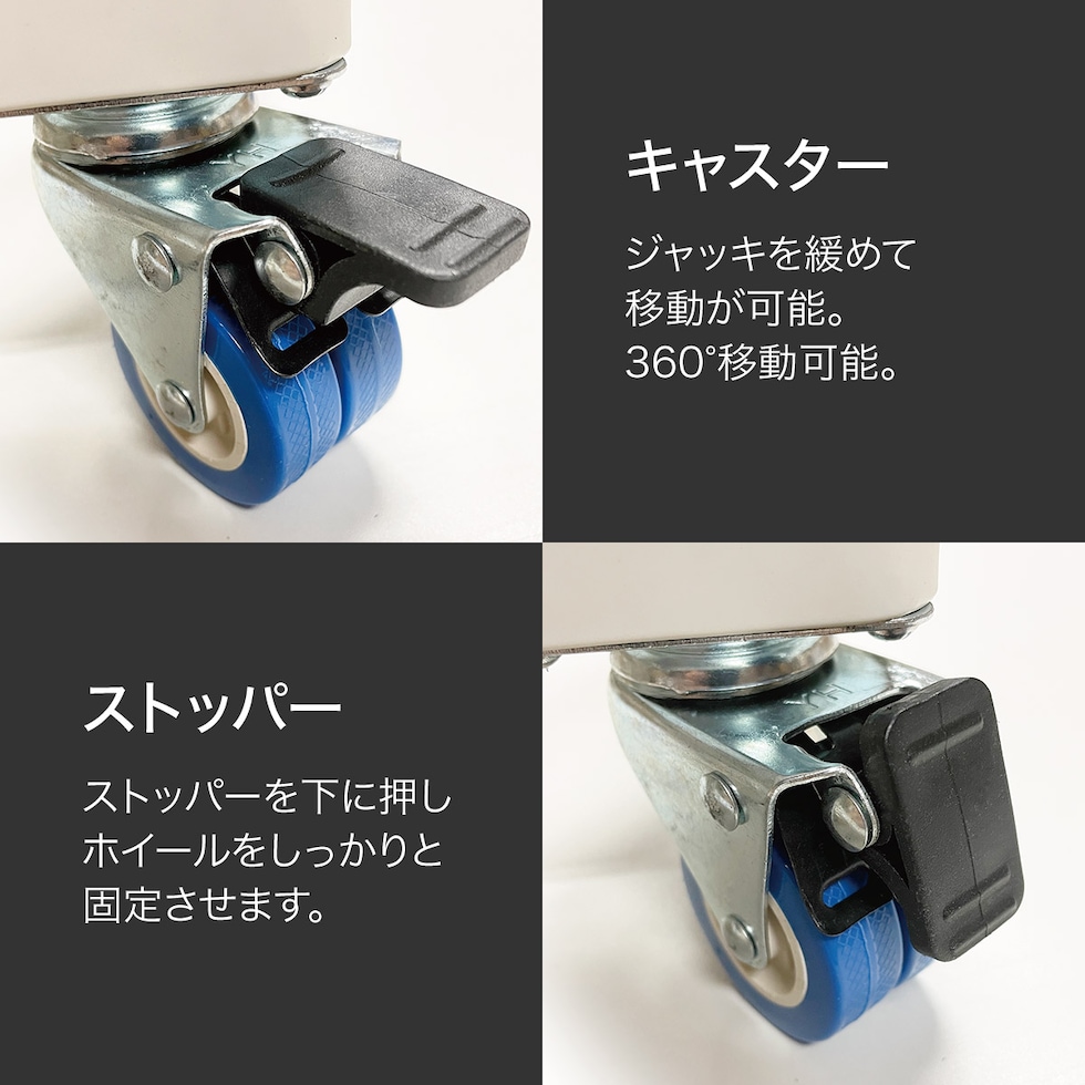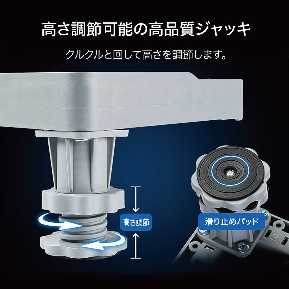 【高さ調整可能の高品質ジャッキ】クルクルと回して高さを調整します。