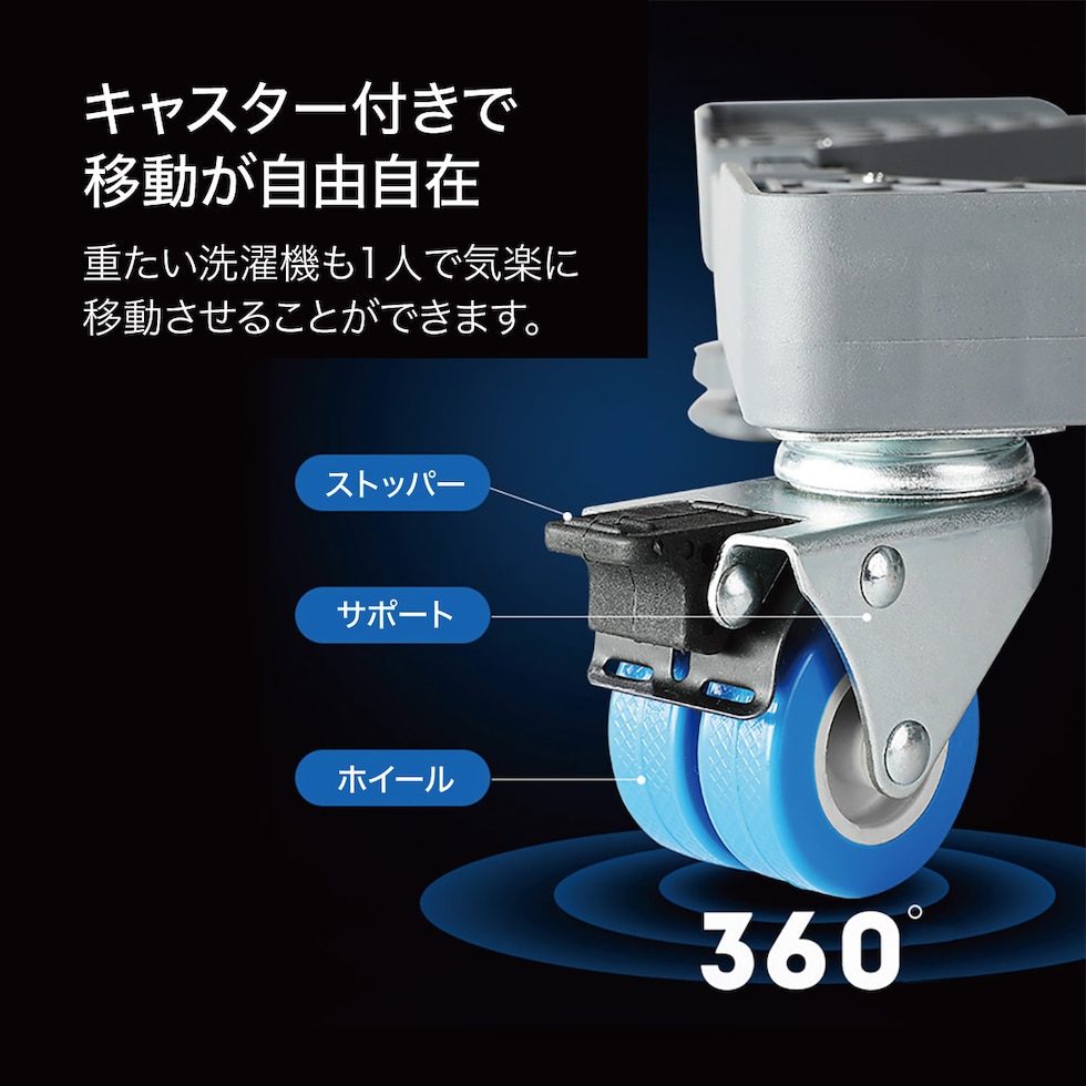 【キャスター付きで移動が自由自在】重たい洗濯機も1人で気軽に移動させることができます。