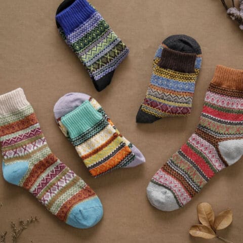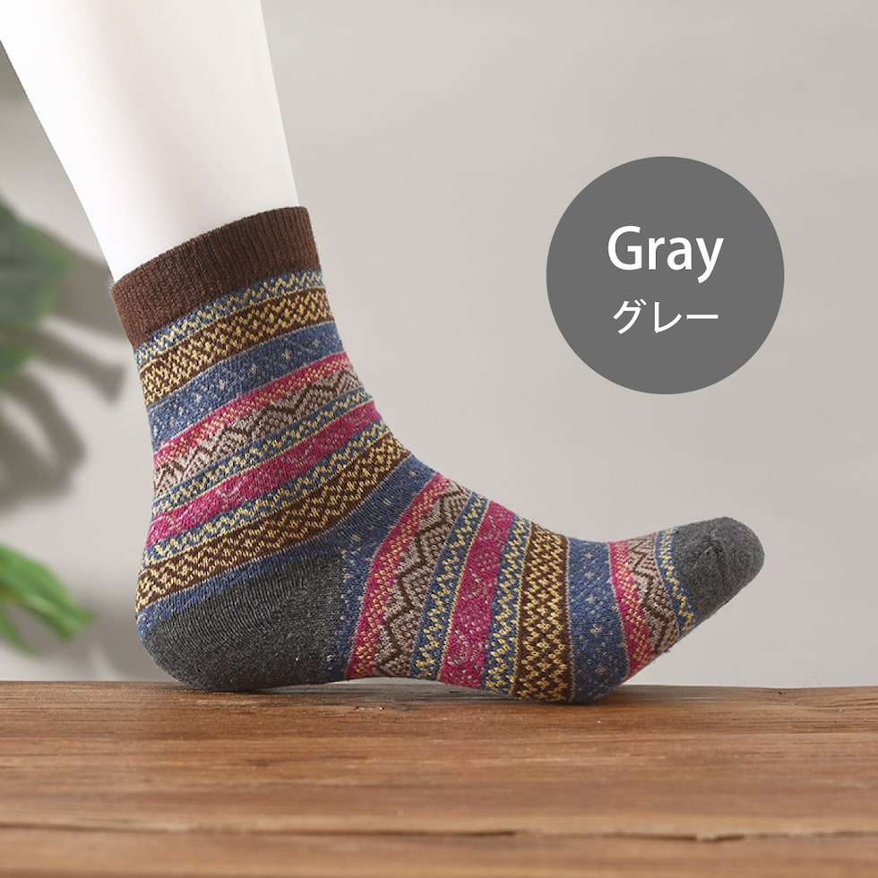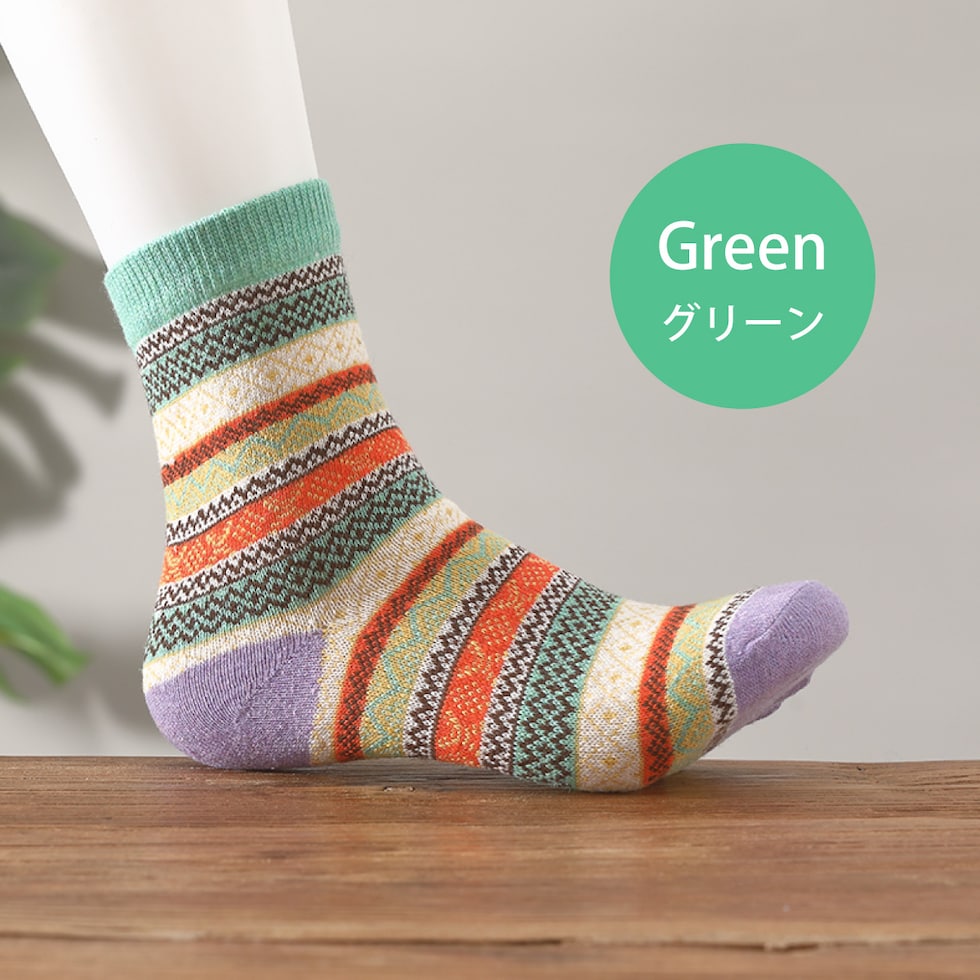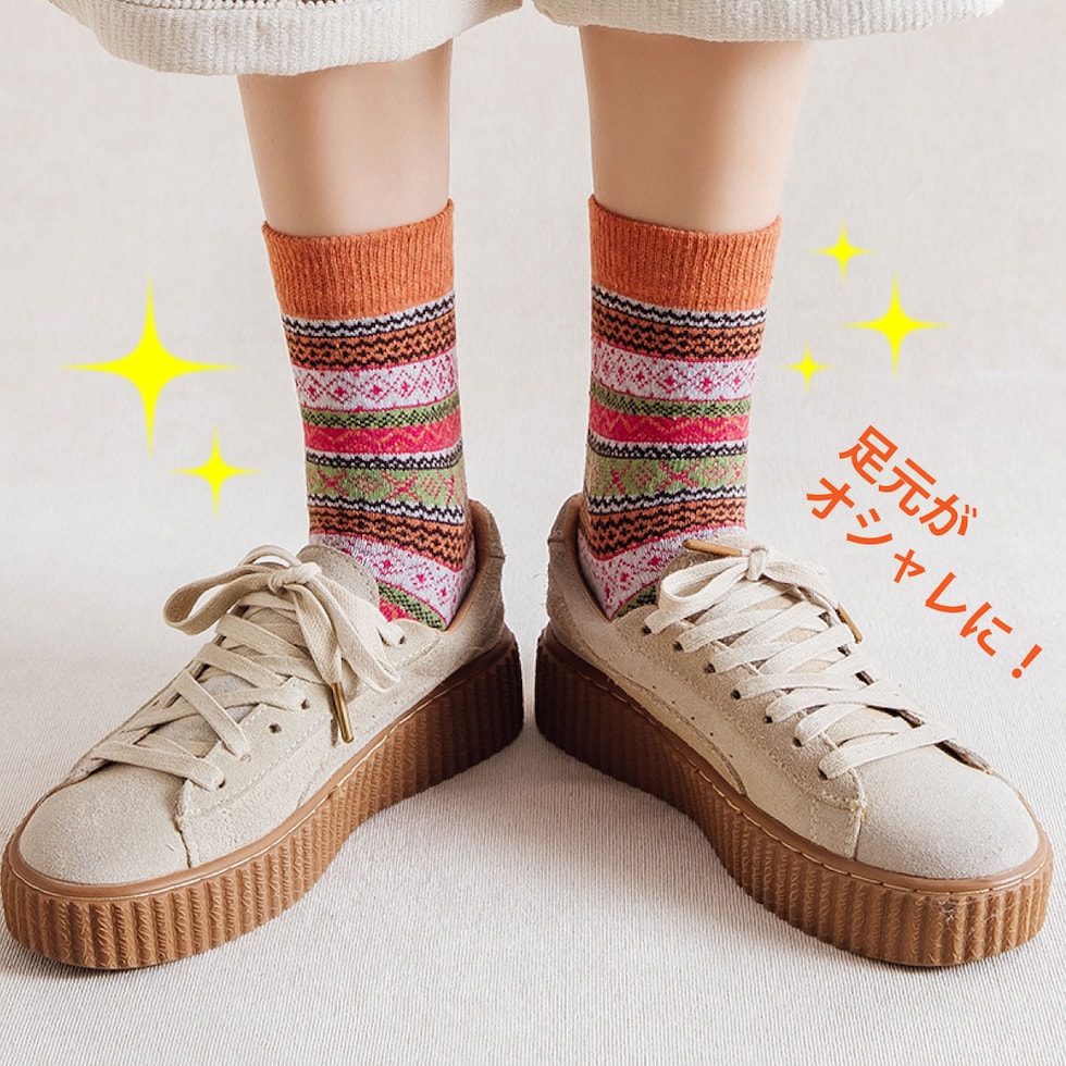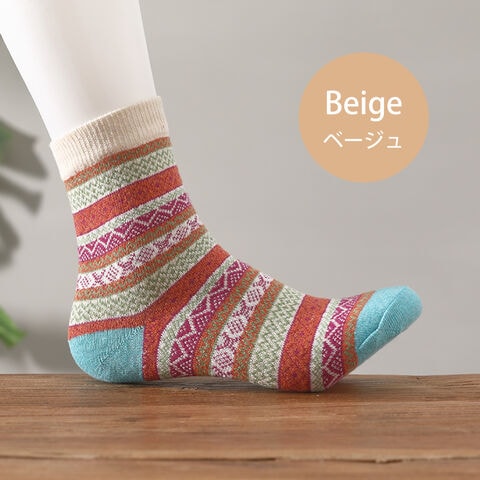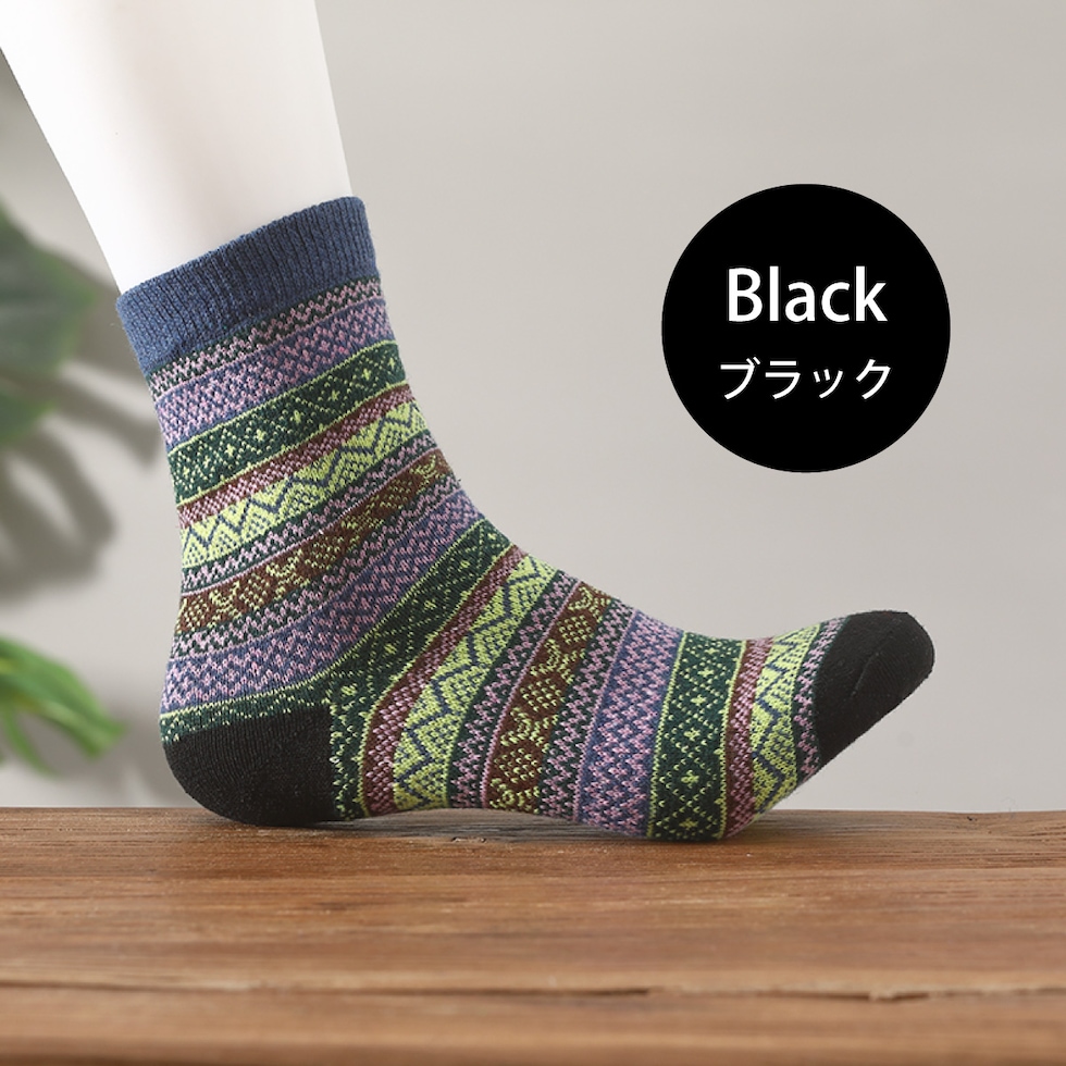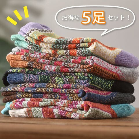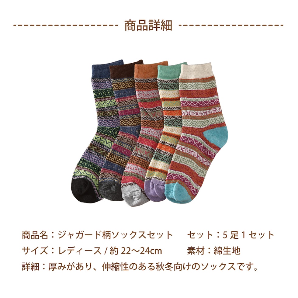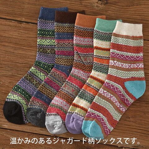 レディース 靴下 ジャガード柄 5足セット ソックス 暖かい おしゃれ ロークルー カラフル 大人 かわいい 冷房対策 保温 厚手 防寒対策 冷え 冷え性対策 socks02