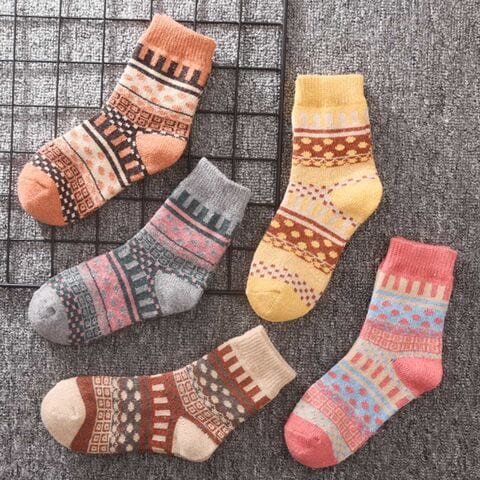 レディース 靴下 パターン柄 5足セット ソックス 暖かい おしゃれ ロークルー カラフル 大人 かわいい 冷房対策 保温 厚手 防寒対策 冷え 冷え性対策 socks03
