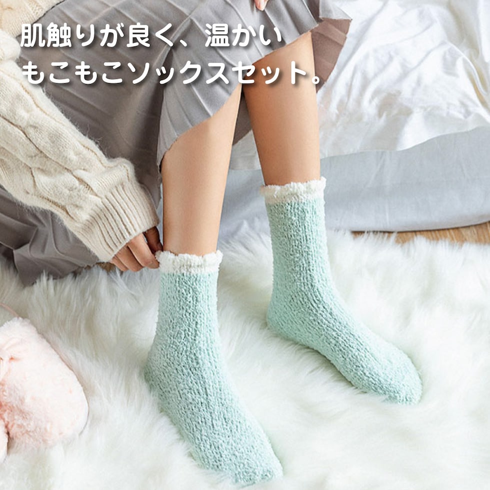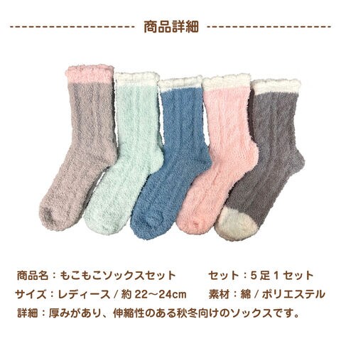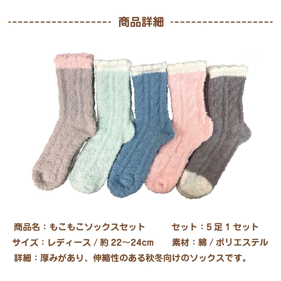 レディース 靴下 もこもこソックス 5足セット ソックス 暖かい おしゃれ ロークルー カラフル 大人 かわいい 冷房対策 保温 厚手 防寒対策 冷え 冷え性対策 socks06