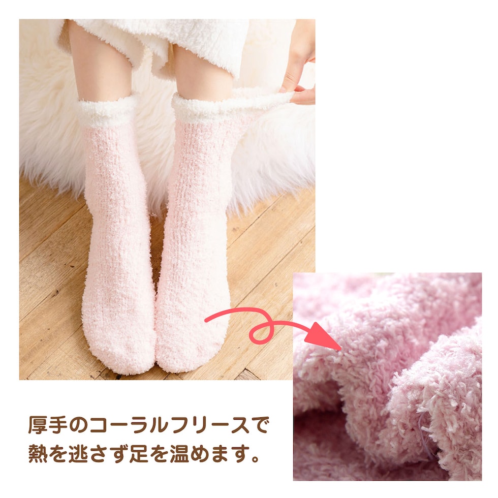 厚手のコーラルフリースで熱を逃がさず足を温めます。