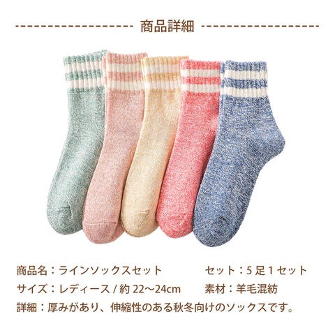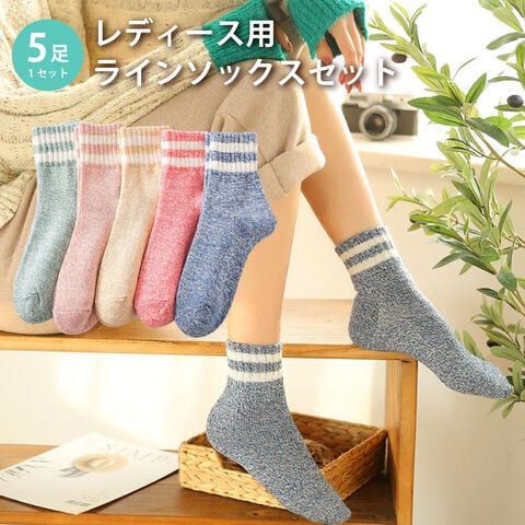 レディース 靴下 ラインソックス 5足セット ソックス 暖かい おしゃれ ロークルー カラフル 大人 かわいい 冷房対策 保温 厚手 防寒対策 冷え 冷え性対策 socks07