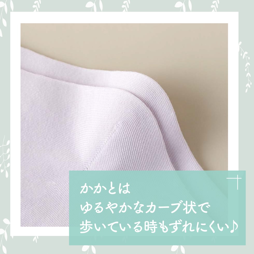 かかとはゆるやかなカーブ状で、歩いている時もずれにくい