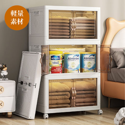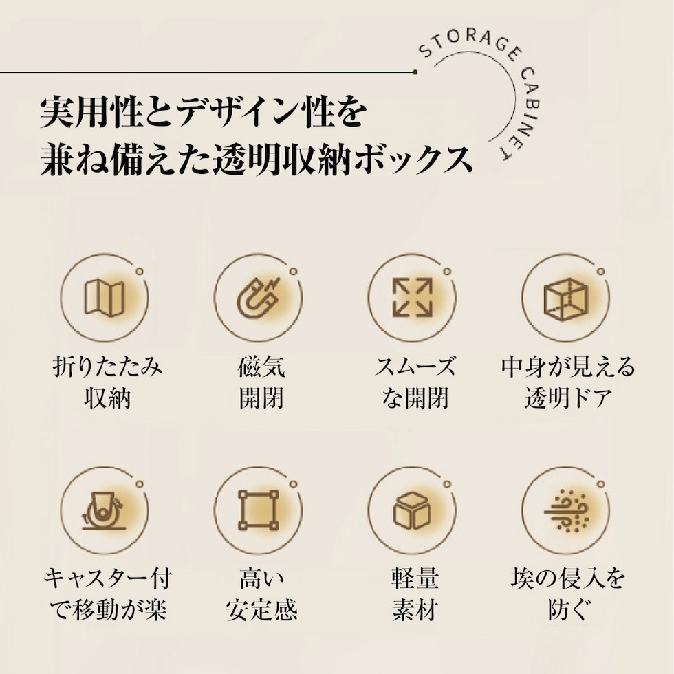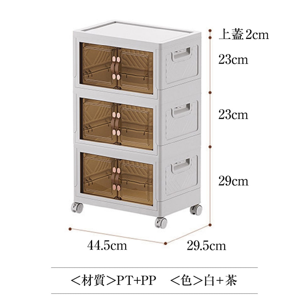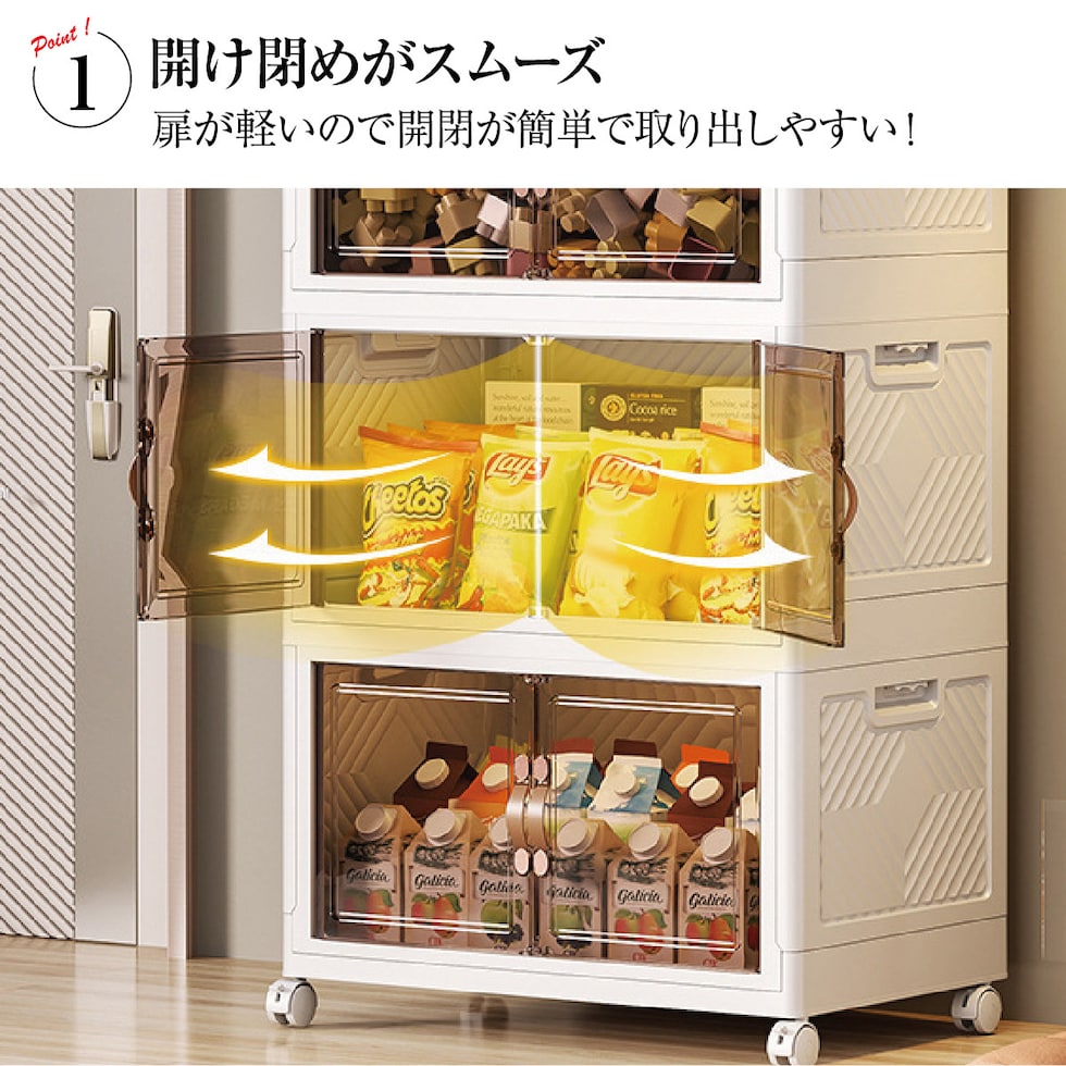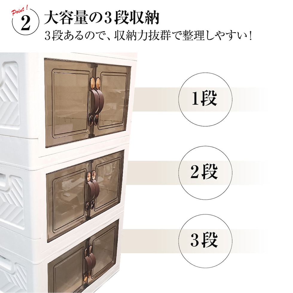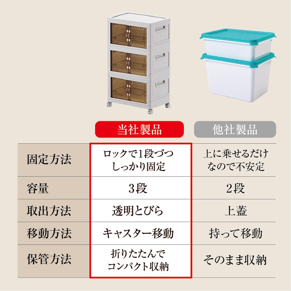 透明収納 透明 収納 ボックス 3段 3個 折りたたみ ケース 組み立て コンテナ クリア ボックス 大容量 移動式 キャスター 前開き 中身が見える 棚 扉 おしゃれ マグネット 軽量 ロック 固定 tomei-box01