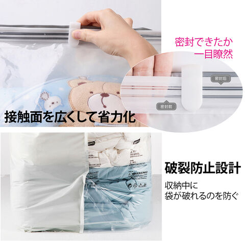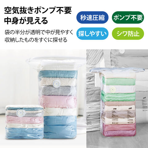 圧縮袋 圧縮 衣類 押すだけ 掃除機不要 2枚セット 衣類圧縮袋 立体圧縮袋 手押し 衣類 収納 圧縮ボックス 衣類ケース カビ対策 防カビ ポンプ不要 衣類収納 衣替え 旅行 vc-bag-02