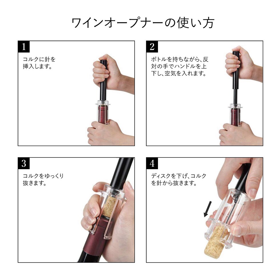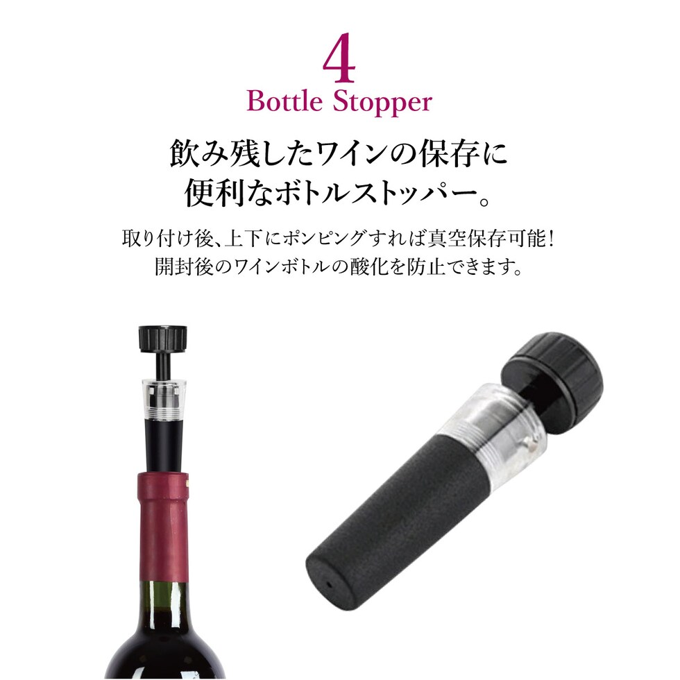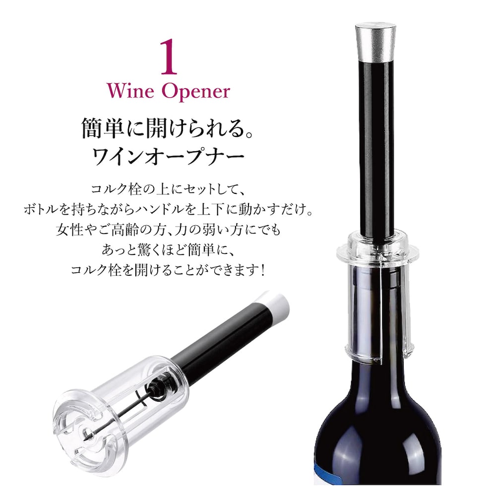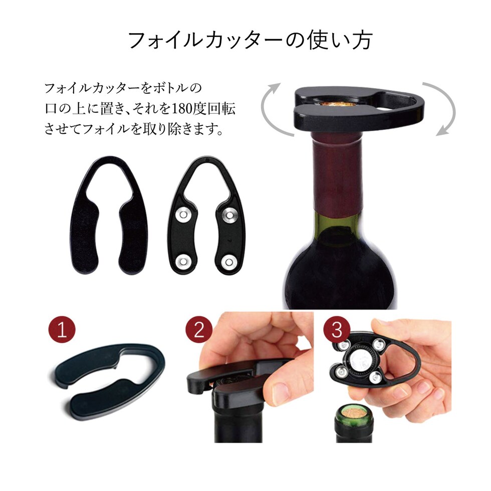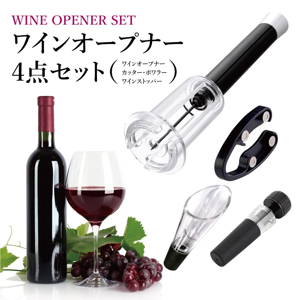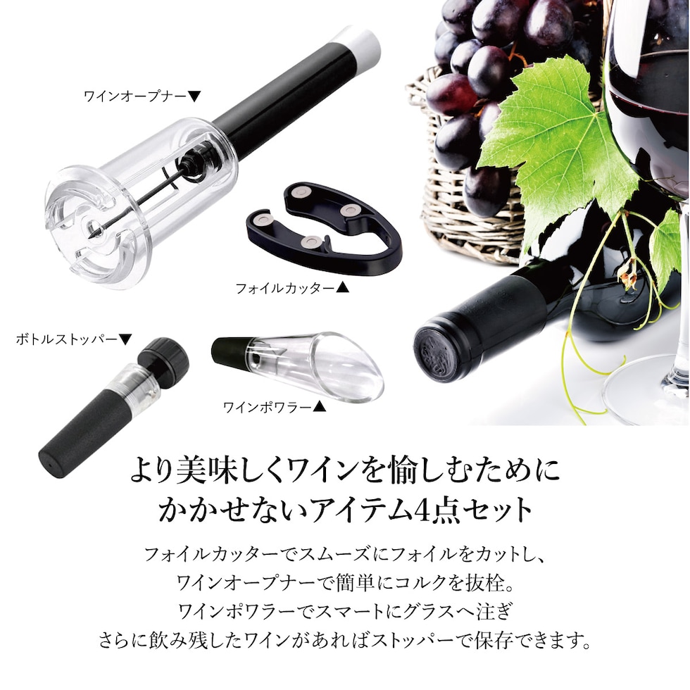 ワインオープナー ワインオープナー ワイン オープナー エアー 4点セット ワインオープナー ホイルカッター ポワラー ワインストッパー キッチングッズ 父の日 wine-opener02