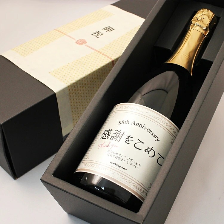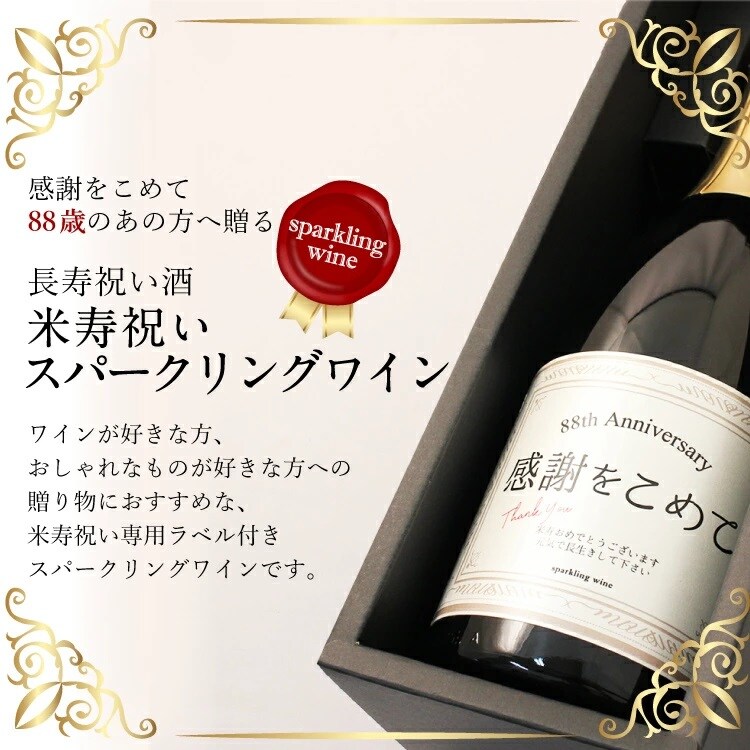 ≪米寿祝い専用スパークリングワイン≫米寿(88歳)に贈る、長寿祝い酒!【米寿祝い スパークリングワイン 750ml】[化粧箱入り]〈ギフト プレゼント 黄色の風呂敷包装 女性 男性 祖父 祖母 上司〉