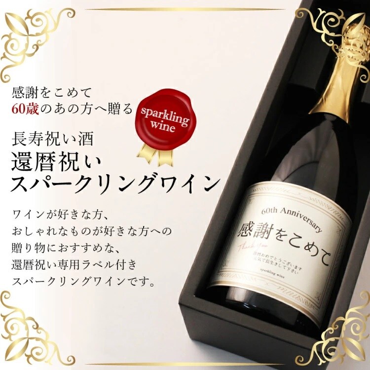 ≪還暦祝い専用スパークリングワイン≫還暦(60歳)に贈る、長寿祝い酒!【還暦祝い スパークリングワイン(プロセッコ) 750ml】[化粧箱入り]〈敬老の日 誕生日 男性 女性 上司 ギフト プレゼント 風呂敷包装〉