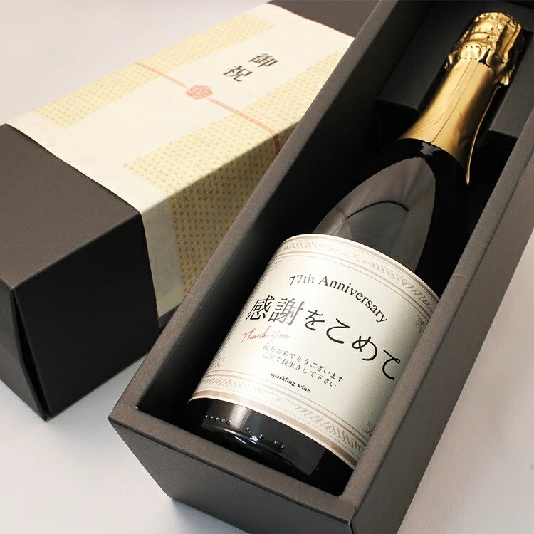 ≪喜寿祝い専用スパークリングワイン≫喜寿(77歳)に贈る、長寿祝い酒!【喜寿祝い スパークリングワイン 750ml】[化粧箱入り]〈誕生日 ギフト プレゼント 風呂敷包装 女性 男性 父 母 上司〉
