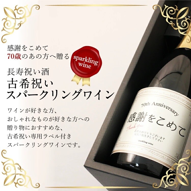 ≪古希祝い専用スパークリングワイン≫古希(70歳)に贈る、長寿祝い酒!【古希祝い スパークリングワイン 750ml】[化粧箱入り]〈敬老の日 ギフト プレゼント 紫色風呂敷包装 女性 男性 父 母 上司〉
