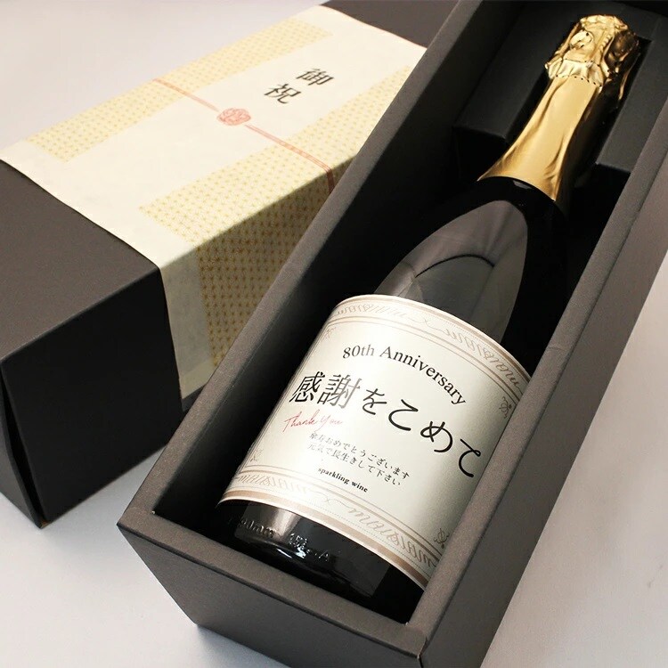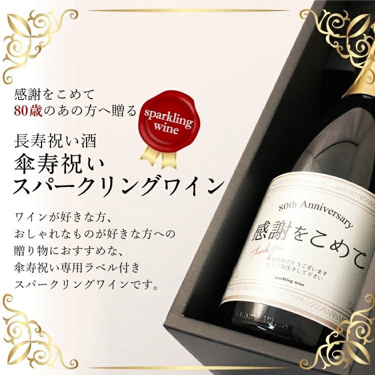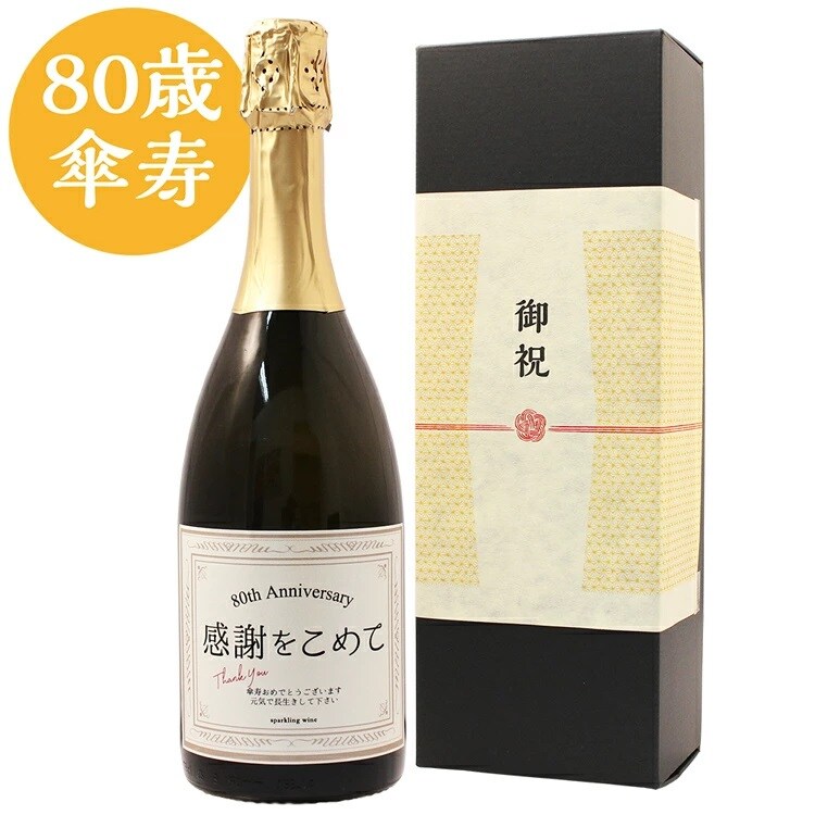 ≪傘寿祝い専用スパークリングワイン≫傘寿(80歳)に贈る、長寿祝い酒!【傘寿祝い スパークリングワイン 750ml】[化粧箱入り]〈ギフト プレゼント 誕生日 黄色風呂敷包装 女性 男性 父 母 祖父 祖母 おじいちゃん おばあちゃん〉