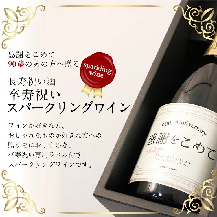 ≪卒寿祝い専用スパークリングワイン≫卒寿(90歳)に贈る、長寿祝い酒!【卒寿祝い スパークリングワイン 750ml】[化粧箱入り]〈 女性 男性 父 母 祖父 祖母 おじいちゃん おばあちゃん ギフト プレゼント 紫色の風呂敷包装 上司〉