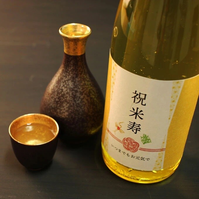 【米寿祝い専用 金箔入り酒粕焼酎】 720ml 米寿祝い 男性 プレゼント 女性 米寿(88歳)に贈る、黄色い瓶の本格焼酎[化粧箱入り]【 べいじゅ お祝い ギフト 送料無料 黄色風呂敷包装 父 母 上司 】