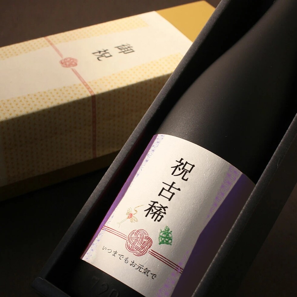 ≪古希祝い専用黒瓶日本酒≫古希(70歳)に贈る贈り物 純米酒 古希祝い 金箔入り日本酒 720ml [化粧箱入り]【 敬老の日 ギフト プレゼント 日本酒 内祝い お返し 結婚祝い 風呂敷包装 父 母 】
