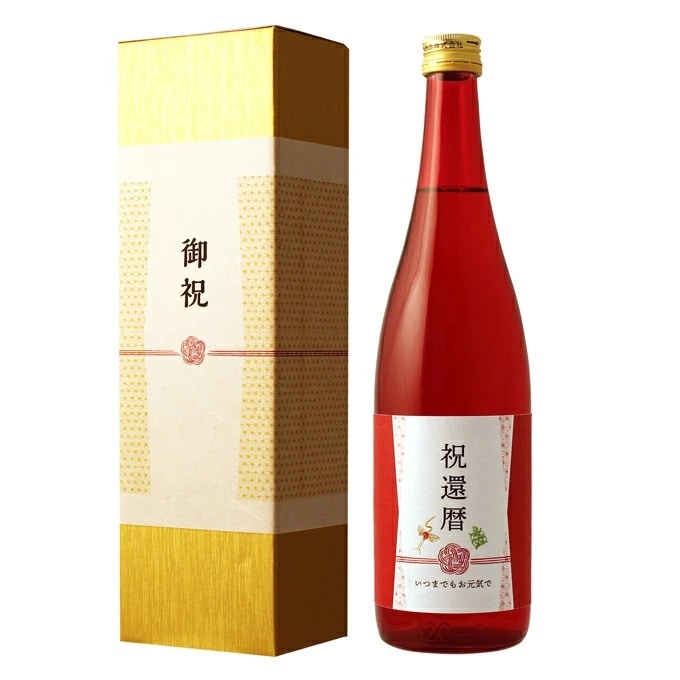 ≪還暦祝い専用梅酒≫還暦(60歳)祝いの真紅の瓶、純米酒仕込み 赤ワイン樽熟成の高級梅酒 720ml [化粧箱入り]【 還暦祝い 男性 女性 ギフト プレゼント 日本酒 内祝い お返し 真紅の風呂敷包装 父 母 祖父 祖母 おじいちゃん おばあちゃん】