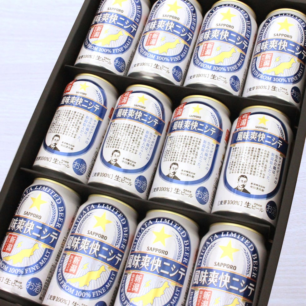 お酒 ギフト 御歳暮 ビール サッポロビール 新潟限定【風味爽快ニシテ】12本セット ギフトボックス入り プレゼント ギフト 新潟 地ビール 男性 女性 上司 誕生日 内祝い お返し 結婚祝い 退職祝い おすすめ 記念品 お祝い 手土産 贈り物