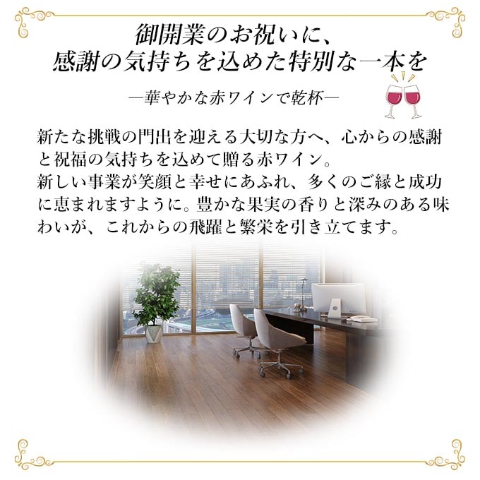 【お祝い酒 開業祝い 赤ワイン】750ml プレゼント 男性 女性 上司 恩師 先生 兄弟 親戚 [化粧箱入り]誕生日 ギフト 父 母 義父 義母 風呂敷包装 高級 おすすめ おしゃれ 記念品 お祝い 贈答品 サプライズ 即日発送