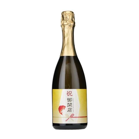 イタリアを代表するプロセッコのスパークリングワインを使用!ボトルに開店祝い専用のラベルを貼り、ラッピングは化粧箱に専用熨斗を巻き、その上から黄色の風呂敷で素敵に梱包します。