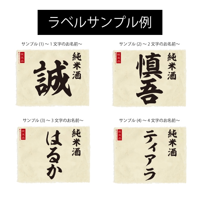 豪華金箔入り純米酒へ、お好きなお名前をお入れしたラベルを貼付いたします。