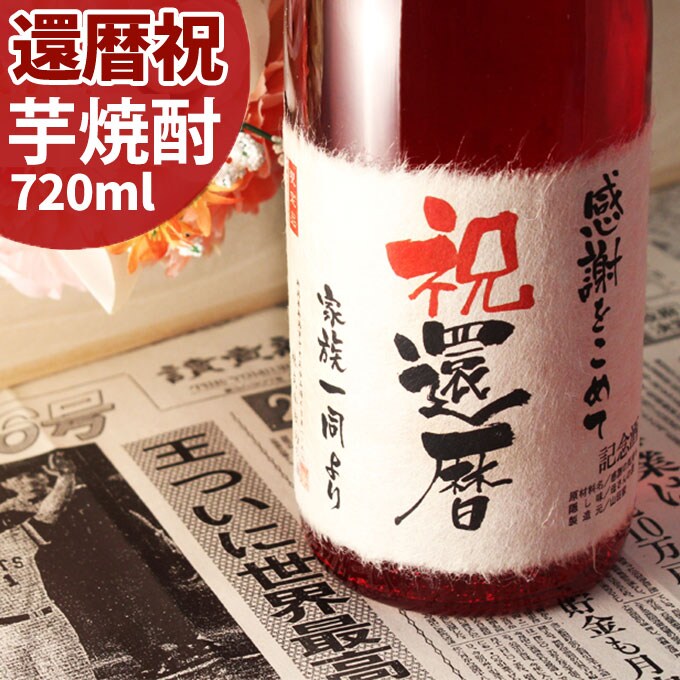 還暦祝いに贈る60年前の新聞付き名入れ酒!【芋焼酎】720ml【退職祝い 男性 女性 上司 ギフト プレゼント 新潟産本格芋焼酎 誕生日 内祝い お返し 結婚祝い 赤い瓶 赤い風呂敷包装 父 母 紅綬褒章】[桐箱入り]