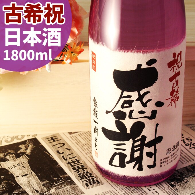 古希祝いに贈る70年前の新聞付き名入れ酒!純米大吟醸酒【紫龍】1800ml【 名入れ 敬老の日 男性 女性 上司 ギフト プレゼント 日本酒 紫の風呂敷包装 父 母 紫綬褒章 】[桐箱入り]