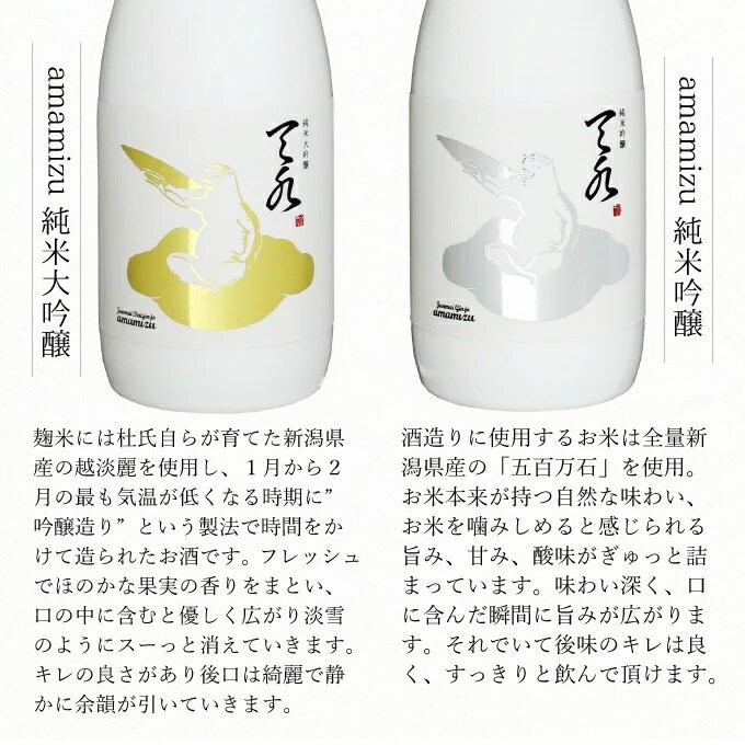 お酒 ギフト 御歳暮 日本酒 飲み比べ【あまみずamamizu】720ml×2本セット(純米大吟醸 1本、純米吟醸 1本) ギフト プレゼント 男性 女性 上司 新潟地酒 誕生日 内祝い お返し 結婚祝い 退職祝い おすすめ おしゃれ 記念品 お祝い 手土産 贈り物 高級 お酒 送料無料