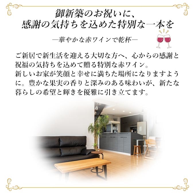 【お祝い酒 新築祝い 赤ワイン】750ml プレゼント 男性 女性 上司 恩師 先生 兄弟 親戚 [化粧箱入り]誕生日 ギフト 父 母 義父 義母 風呂敷包装 高級 おすすめ おしゃれ 記念品 お祝い 贈答品 サプライズ 即日発送