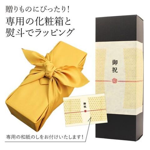 イタリアを代表するプロセッコのスパークリングワインを使用!ボトルに昇進祝い専用のラベルを貼り、ラッピングは化粧箱に専用熨斗を巻き、その上から黄色の風呂敷で素敵に梱包します。