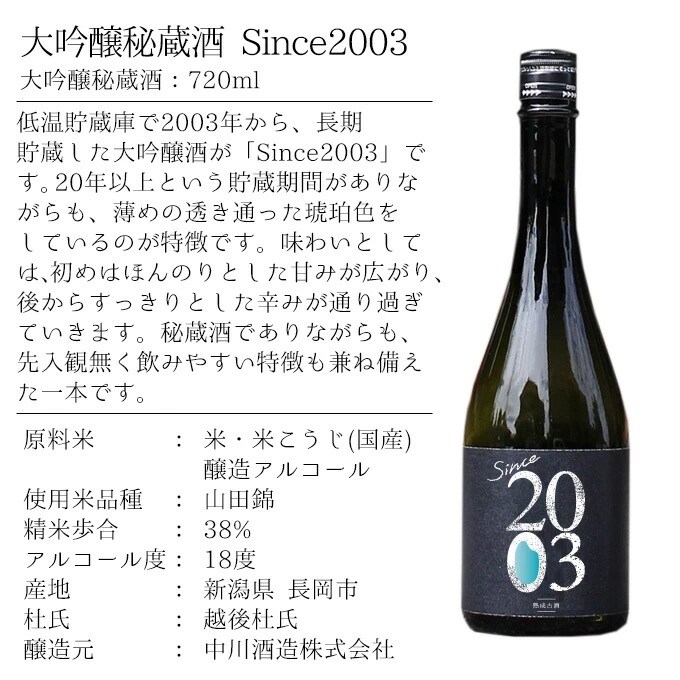 「since 2003」は平成15年(2003年)に醸造が完了し、