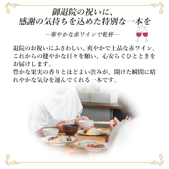 【お祝い酒 退院祝い 赤ワイン】750ml プレゼント 男性 女性 上司 恩師 先生 兄弟 親戚 [化粧箱入り]誕生日 ギフト 父 母 義父 義母 風呂敷包装 高級 おすすめ おしゃれ 記念品 お祝い 贈答品 サプライズ 即日発送