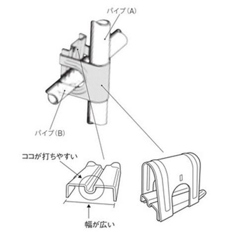 - ・幅の広いクサビで打ち込みやすいため、効率良くしっかりと固定できます。
