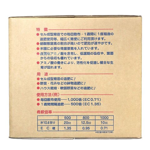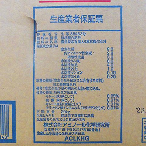 - ※微量要素入り(キレート鉄、 ホウ素、 亜鉛、 マンガン、 モリブデン)