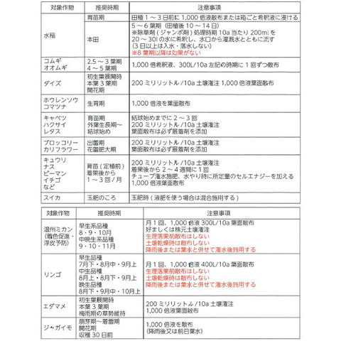 - ・土壌施用は 200ml/10a を目安にしてください。
