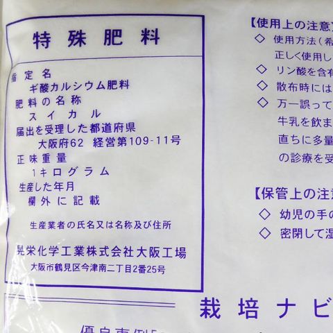 - ■葉面散布 500~1000倍 (肥料登録の為、作物・倍数・回数に制限はありません。)
