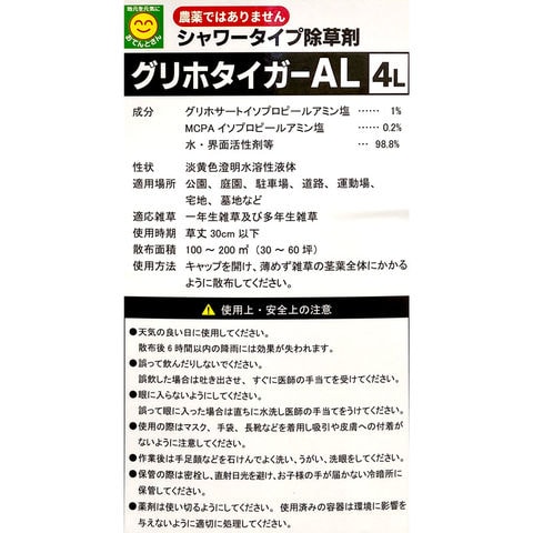 除草剤 グリホタイガーAL 4L×4本入 ケース販売  シャワータイプ グリホサート+MCPA/非農耕地用