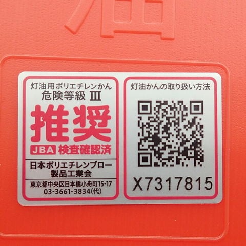 - ●東日本地域で主に使われている赤色の灯油専用のポリエチレン缶です。
