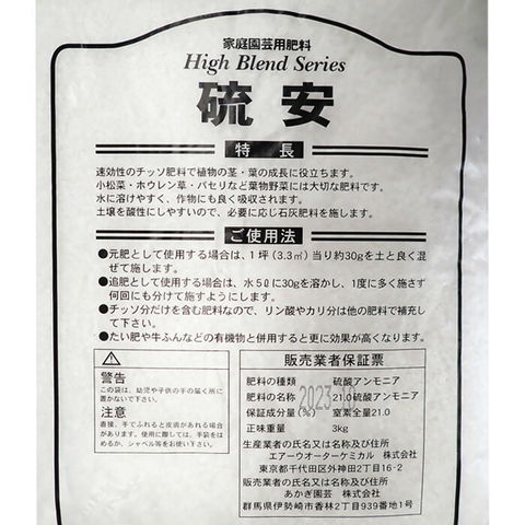 - ※チッソ分だけを含む肥料なので、リン酸やカリ分は他の肥料で補充して下さい。