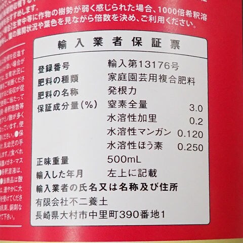 - ・発根力は、他の肥料と混用すると吸収を促進します。