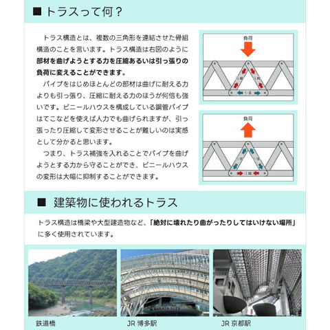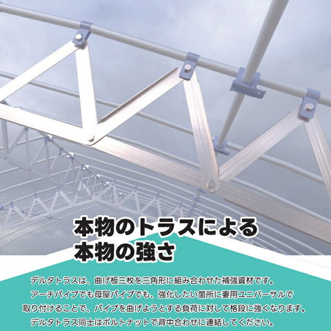 - ■デルタトラス同士はボルトナットで背中合わせに連結してください。既存のハウスへの後付けも可能です。