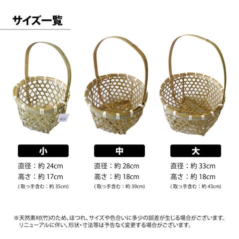 - ●野菜の収穫、山菜取り、小物入れ等に最適な丸かごです。