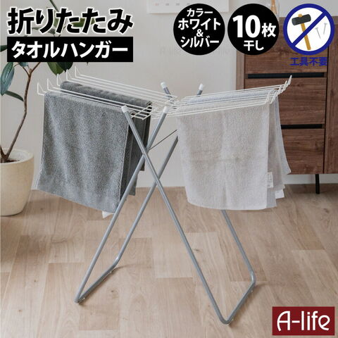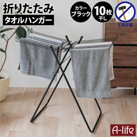 室内物干し タオルハンガー ホワイト ブラック 10枚干し ホワイト タオル掛け 折りたたみ 物干し 部屋干し ランドリー