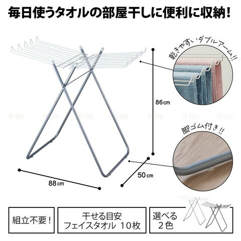 | 商品説明 | 無駄のないシンプルデザインで、お部屋に馴染むタオルハンガーです。 省スペースでフェイスタオルが10枚干せます タオルをかけるアーム部分は「ダブルアーム」になっているので、隙間ができて乾きやすくなっています。 完成品折りたたみ式なので、広げればすぐにご使用いただけます。 折りたたんだ時は厚さ7cmになるので、使わないときは隙間などに収納できます。 梅雨や花粉、雪の時期などの部屋干しに便利です。 シンプルなデザインで使いやすい。 【配送について】送料無料 ※北海道・沖縄・離島地域は追加送料が発生いたします。 詳しくはこちらからご確認をお願いいたします。 |