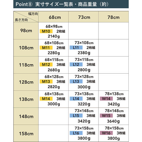 【W16】 幅78×長さ158×厚さ1.5cm 組合せ:3枚組 |