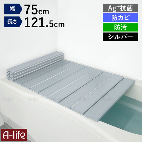 風呂ふた 折りたたみ Ag+ 銀イオン 抗菌 防カビ 防汚加工 軽量 風呂蓋 風呂フタ お風呂 ふた 軽い【L12】75×121.5cm シルバー