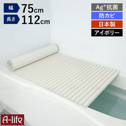 日本製 風呂ふた シャッター式 75×112cmAg+ 銀イオン 抗菌 防カビ加工 軽量 風呂蓋 風呂フタ お風呂 ふた 軽い 【L11】75×112cm アイボリー